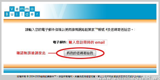 03.輸入您註冊時的email後點擊"將我的密碼寄給我"按鈕