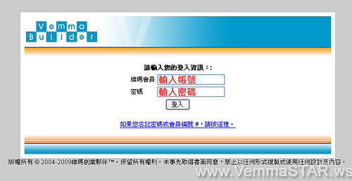 01.登入你自己的VB网站https://www.vemmabuilder.com/login/index.jsp (点图放大)